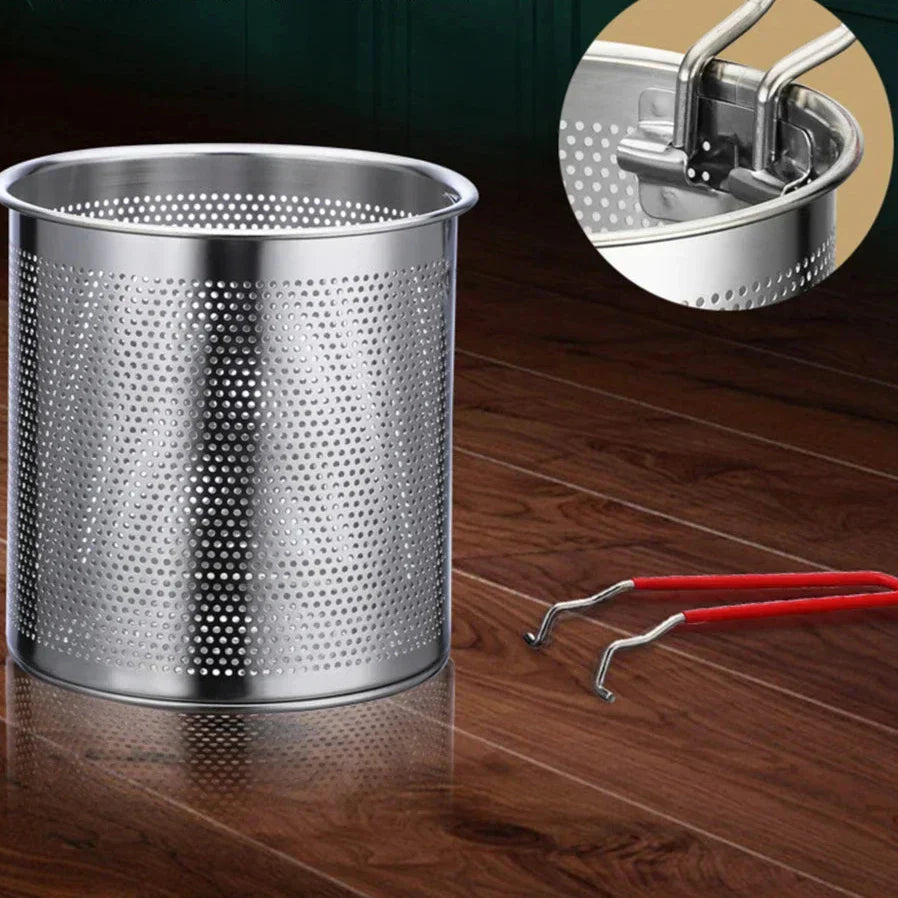 Cesta de Inox com Peneira Integrada: A cesta de inox da Panela Fritadora é projetada para peneirar o óleo, separando as sujeiras e garantindo que seus alimentos fiquem sempre crocantes e saborosos.